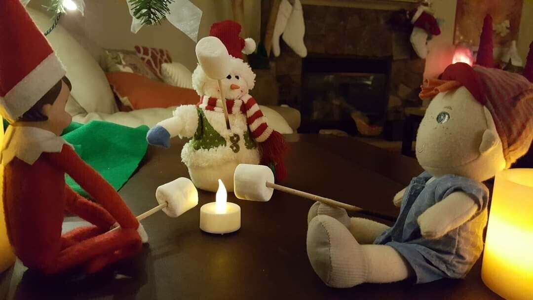 Alvin and his friends toasting marshmallows around the campfire