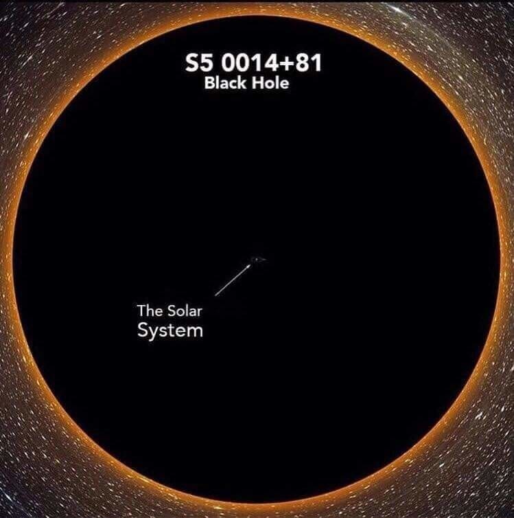 My problems are not only infinitesimally small in comparison to the size of our own sun yet equally small compared to the size of our solar system. Now I compound this with the size of a black hole then I discover that my problems no matter how big I perceive then to be, are no match for what is compared to out there. Even the ultimate ” problem” of my own mortality is laid bare at the feet of a black hole that is constantly in the process of destruction and death of any star, planet or system.