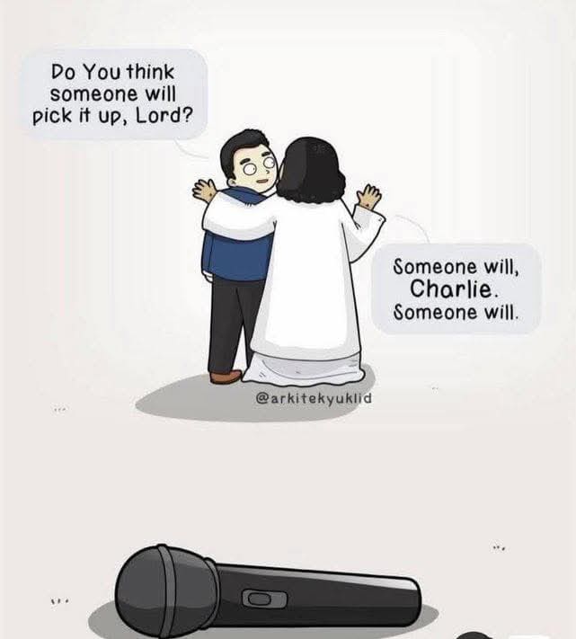 The microphone has been dropped. Charlie Kirk is no longer at the mic. I wonder who is next to pick it up and bring on a new message. There are many such candidates from diverse backgrounds, yet who will be the one?