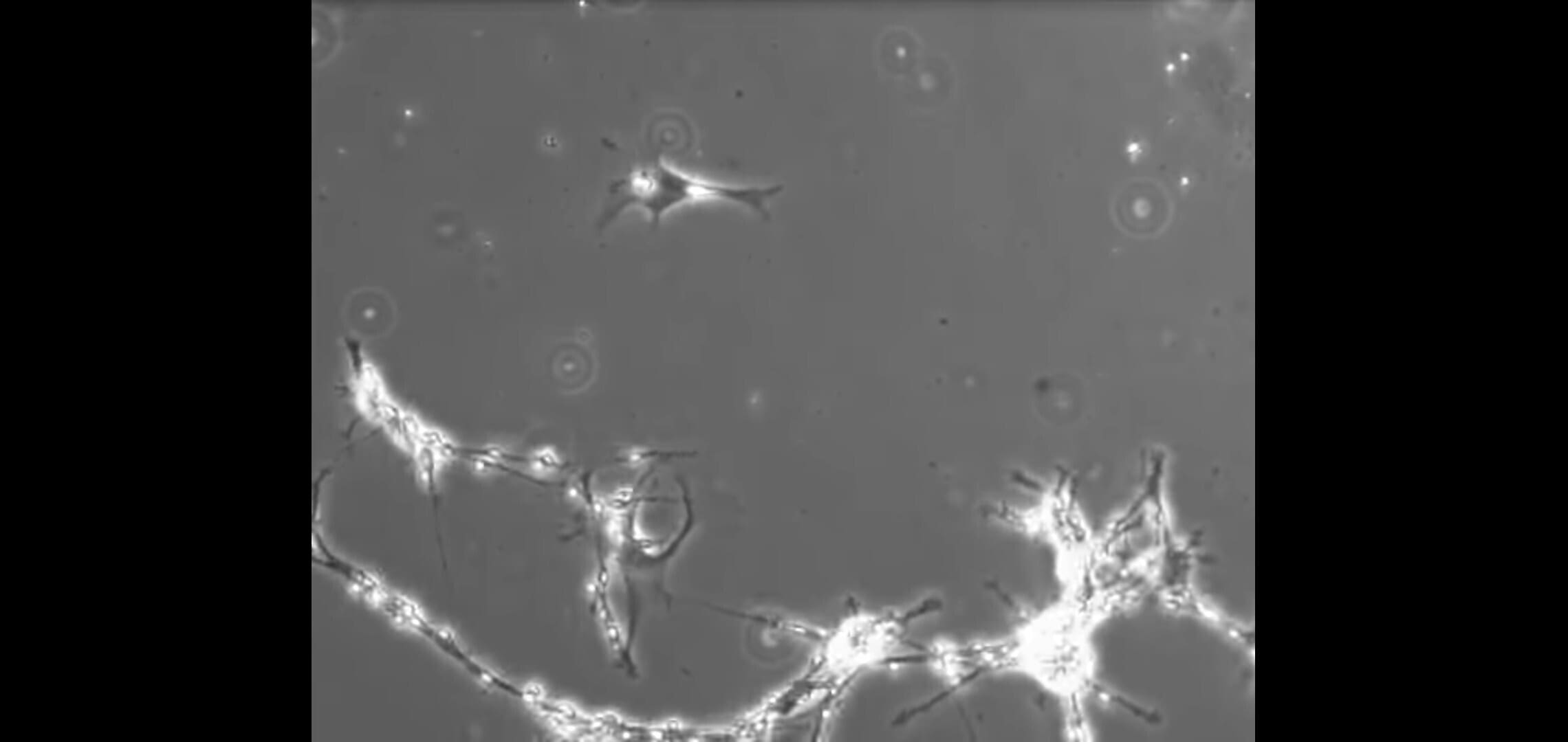 This is a little video clip ( or photograph) under the electron microscope of neurons growing and creating new pathways or changing older pathways and establishing a network.