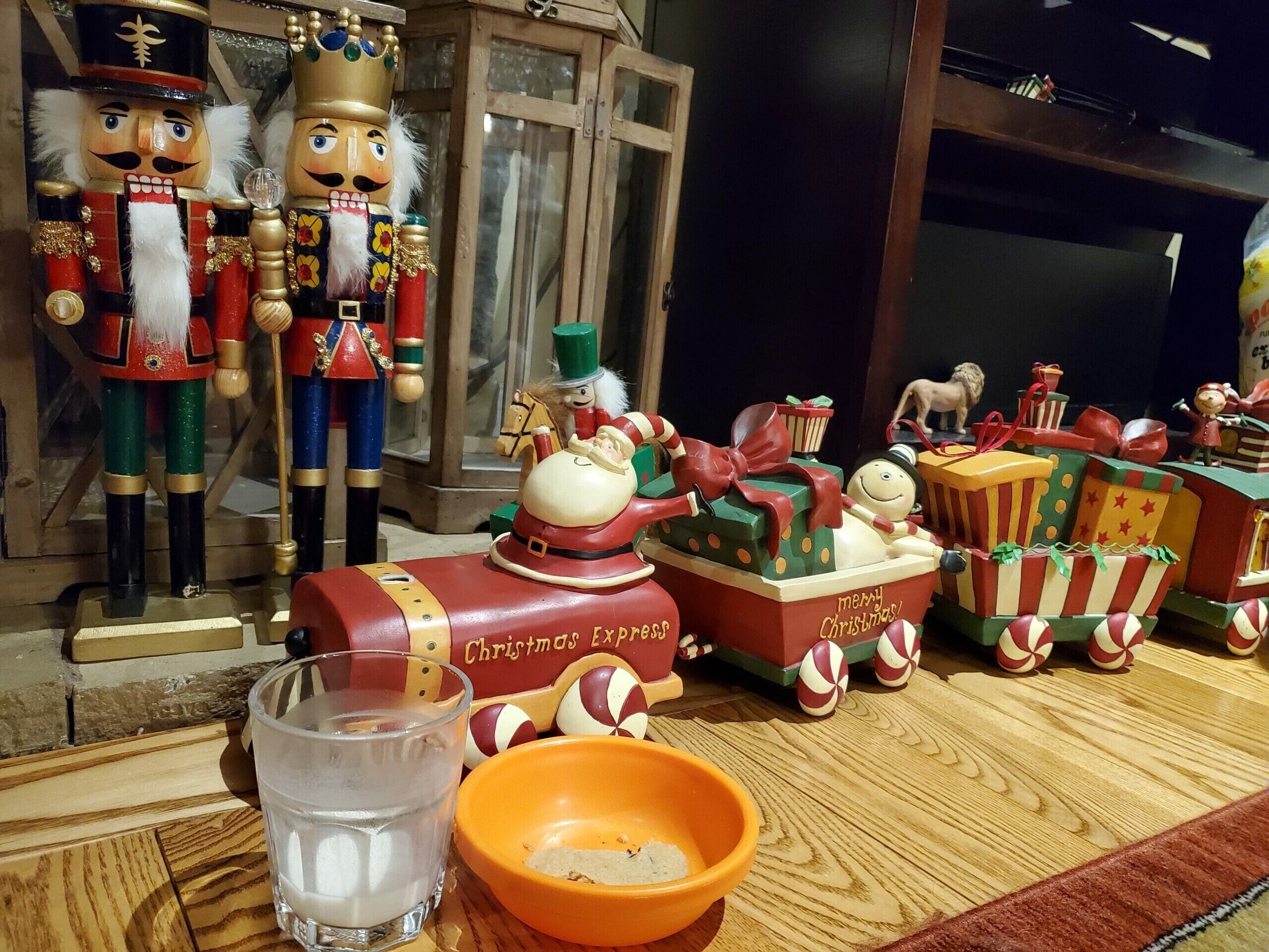 ME: no lets not, Santa needs privacy while putting the presents under the tree ( so do we while we set up the scene downstairs)